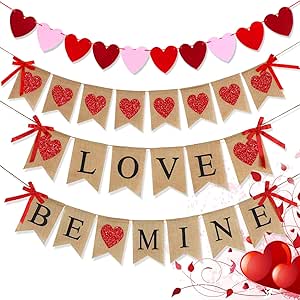 Amazon Com 4 Pieces Valentines Banner Set Felt Heart Banner Glitter Heart Burlap Banner Rustic Love Banner Be Mine Hanging Banner For Valentine S Day Decorations Engagement Wedding Party No Diy Required Home
